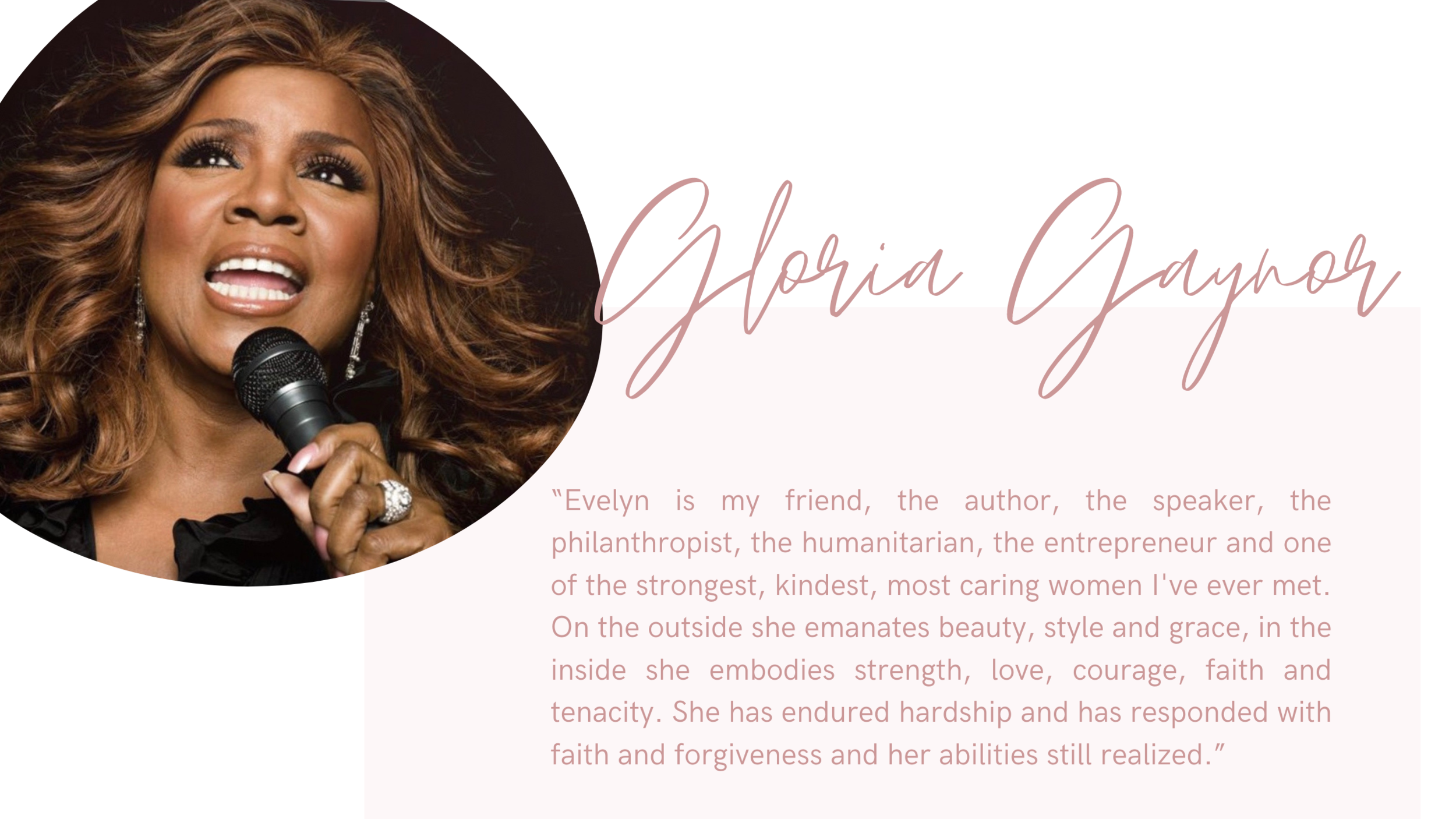 Before earning degrees at Rutgers University and NYU and devoting her life and a successful career to helping global victims of violent crimes and social injustice, Evelyn was a survivor herself. Despite it all, Evelyn did not allow her past to hold her back. Instead, she let it fuel her tenacious spirit to push through it all and make a difference for women and children who are suffering across the globe.